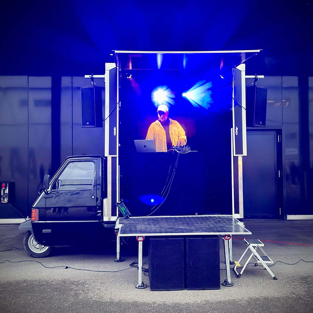 Event-DJ von bearbeat, von A bis Z durchgeplant. Wir bringen das gesamte Equipment mit. Unsere DJs spielen an eurem Anlass natürlich auch auf einer unserer mobilen Bühnen – ein echter Hingucker!